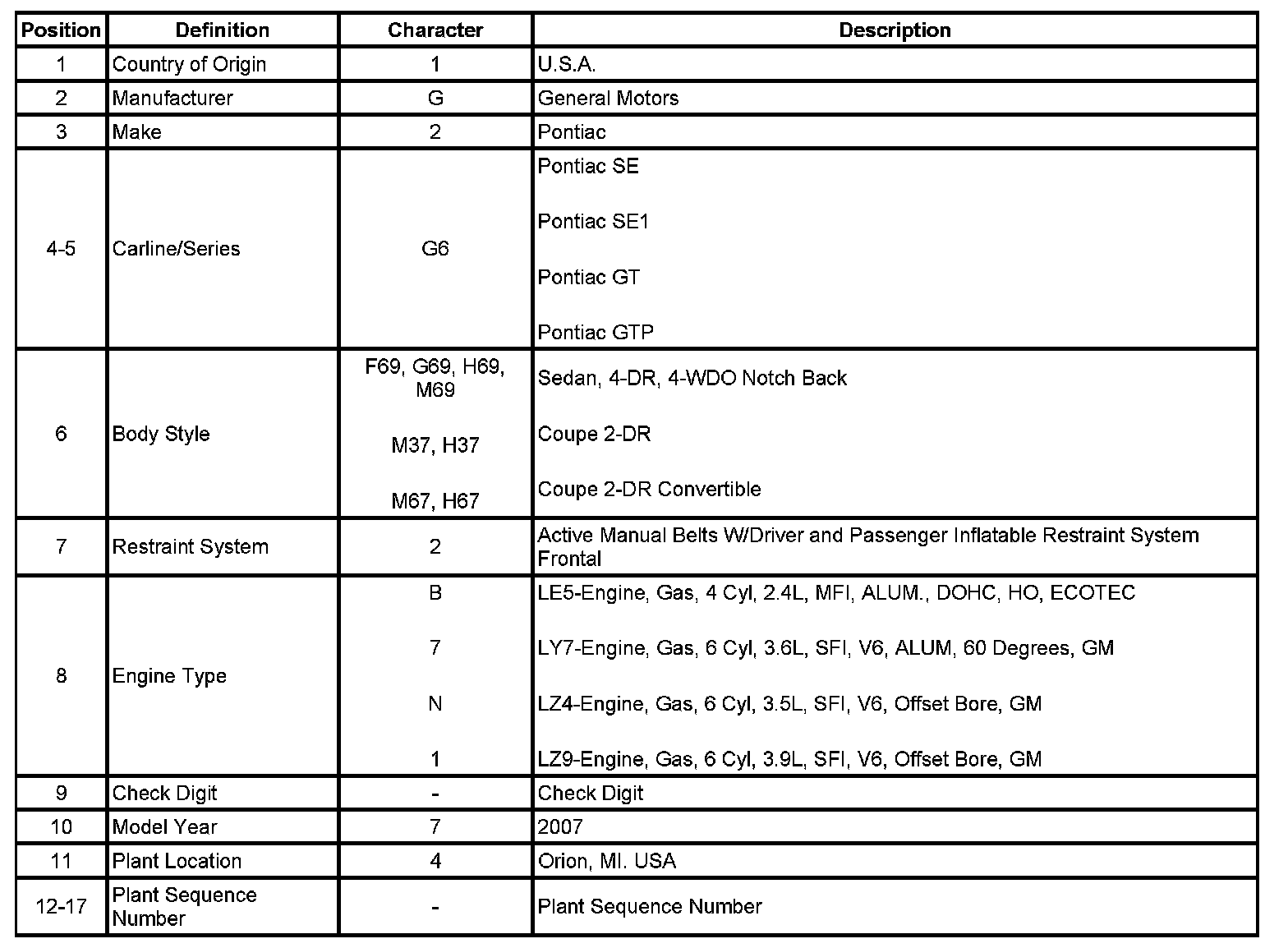 Vehicle, Engine and Transmission ID and VIN Location, Derivative and Usage