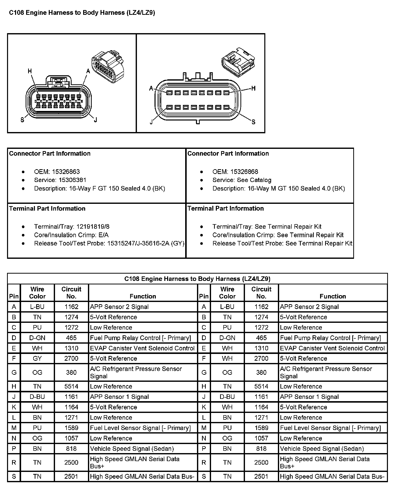 C108 Engine Harness To Body Harness (LZ4/LZ9):