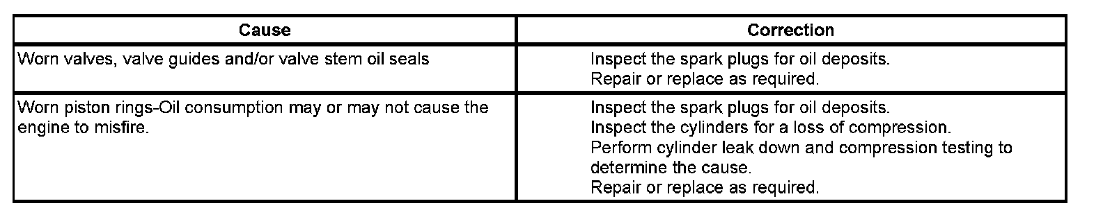 Base Engine Misfire with Excessive Oil Consumption