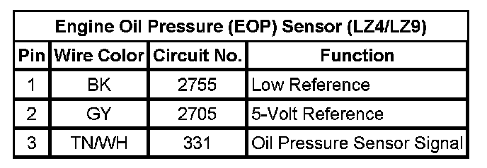 Engine Oil Pressure (EOP) Sensor (LZ4/LZ9)