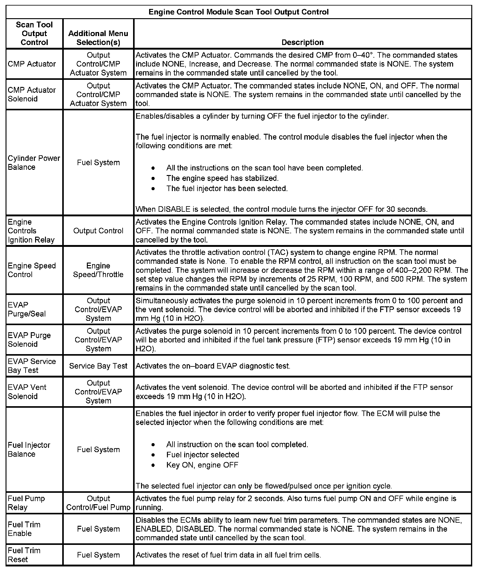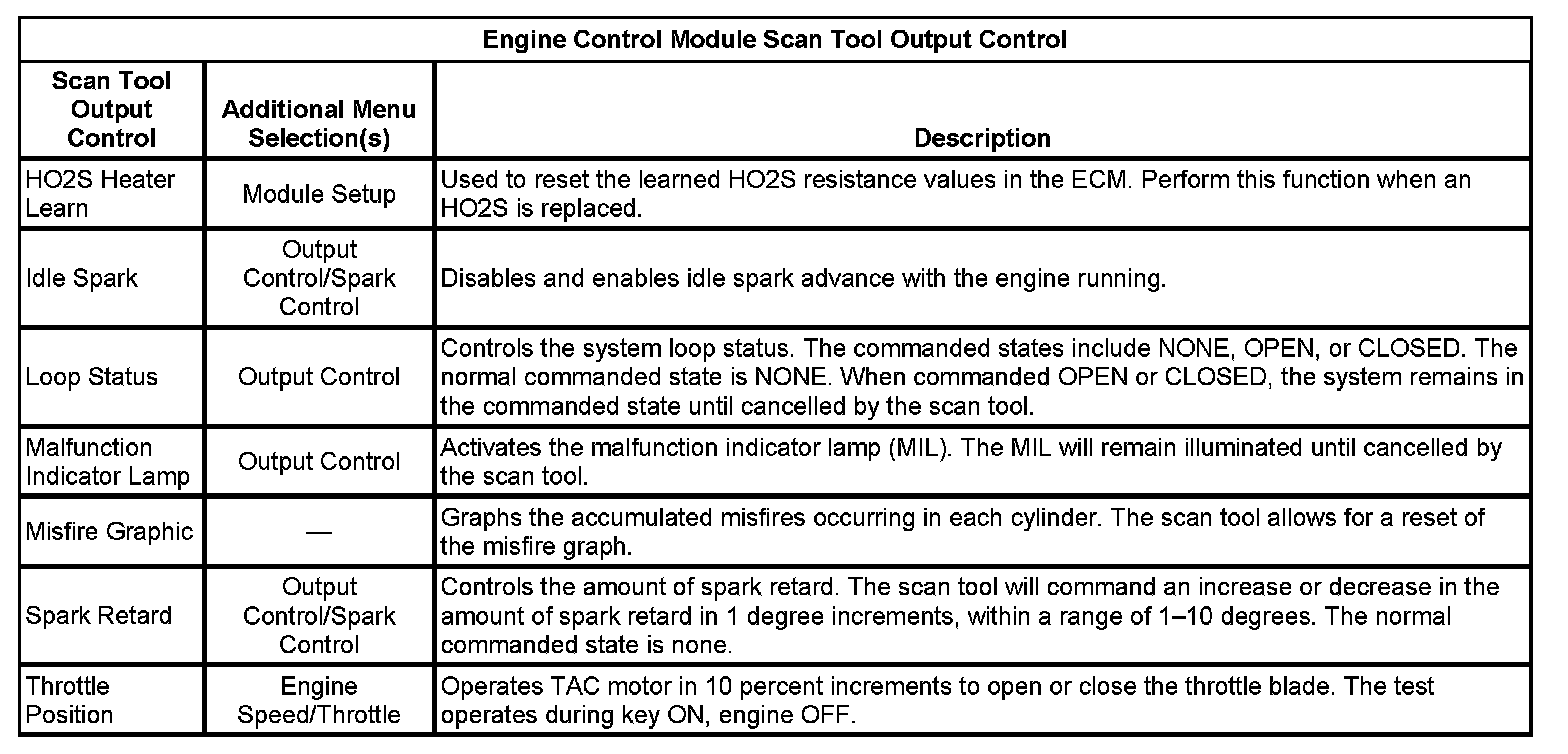 Scan Tool Output Controls