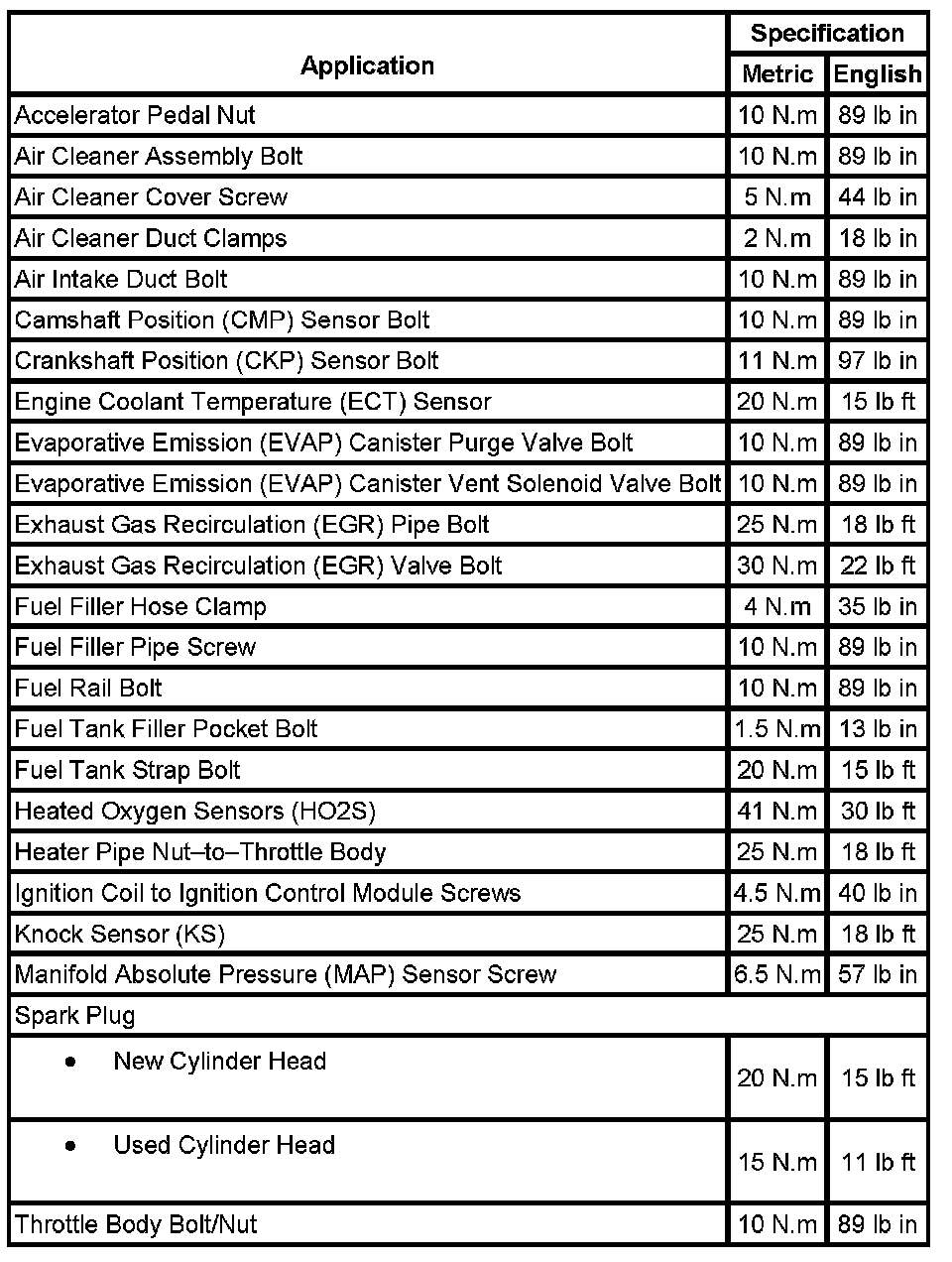 Fastener Tightening Specifications
