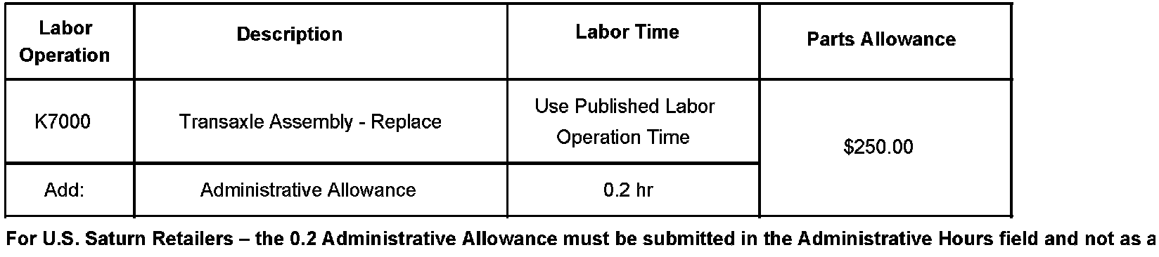 Failure to return the replaced transaxle by the due date will result in the dealership being debited the entire warranty claim (parts and labor). The removed unit must be returned complete in the shipping container. For effective engineering analysis, please do not remove or disassemble any components. Dealerships returning transaxles that have been even partially disassembled will be judged as violating this procedure and, as such, will be billed for all materials furnished.