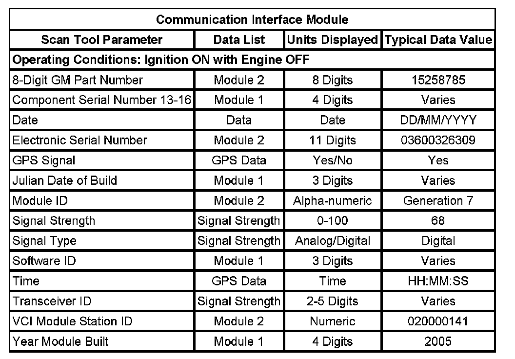 Scan Tool Data List