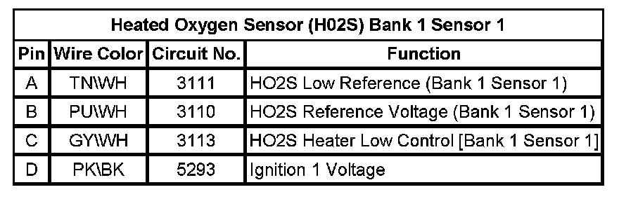 Heated Oxygen Sensor (H02S) Bank 1 Sensor 1
