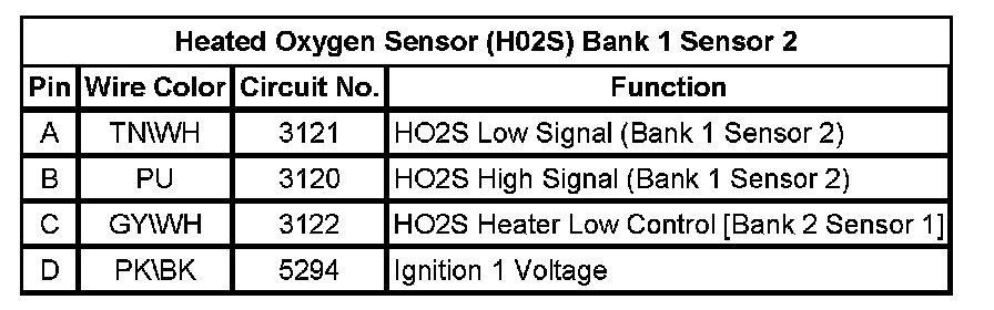 Heated Oxygen Sensor (H02S) Bank 1 Sensor 2