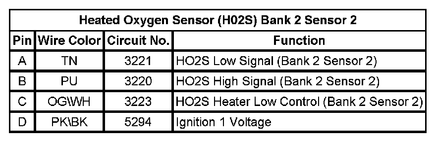 Heated Oxygen Sensor (H02S) Bank 2 Sensor 2