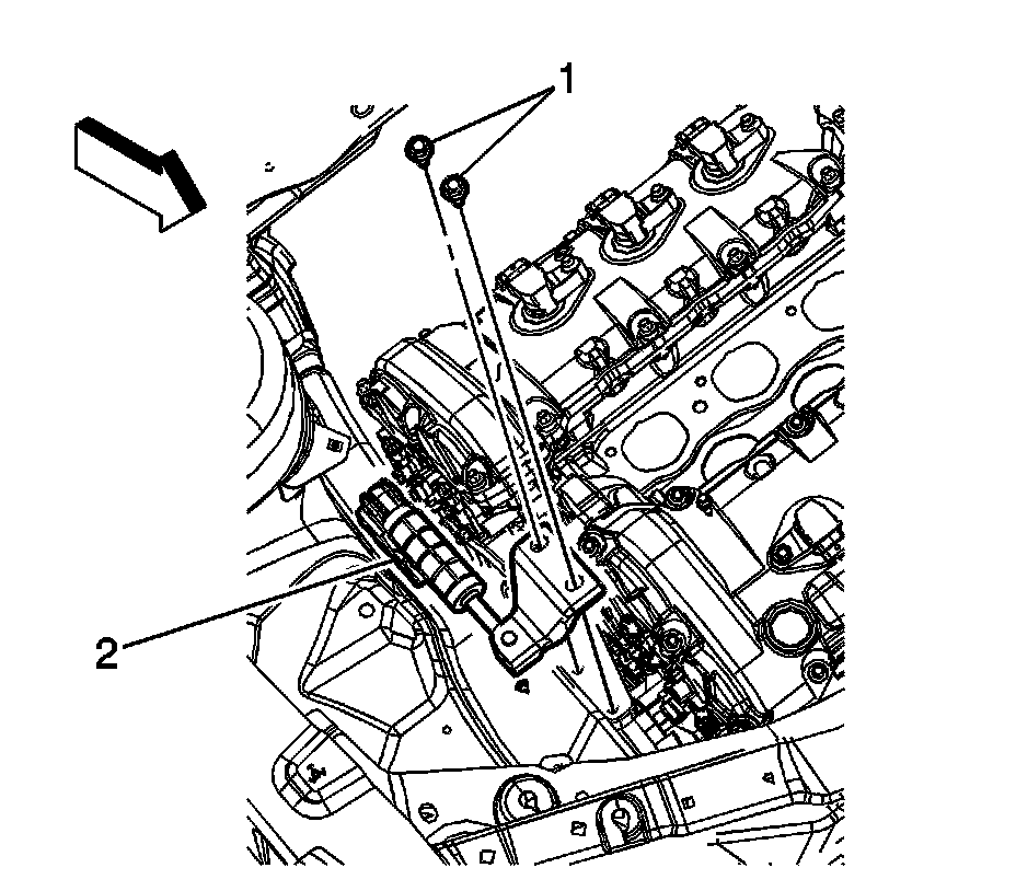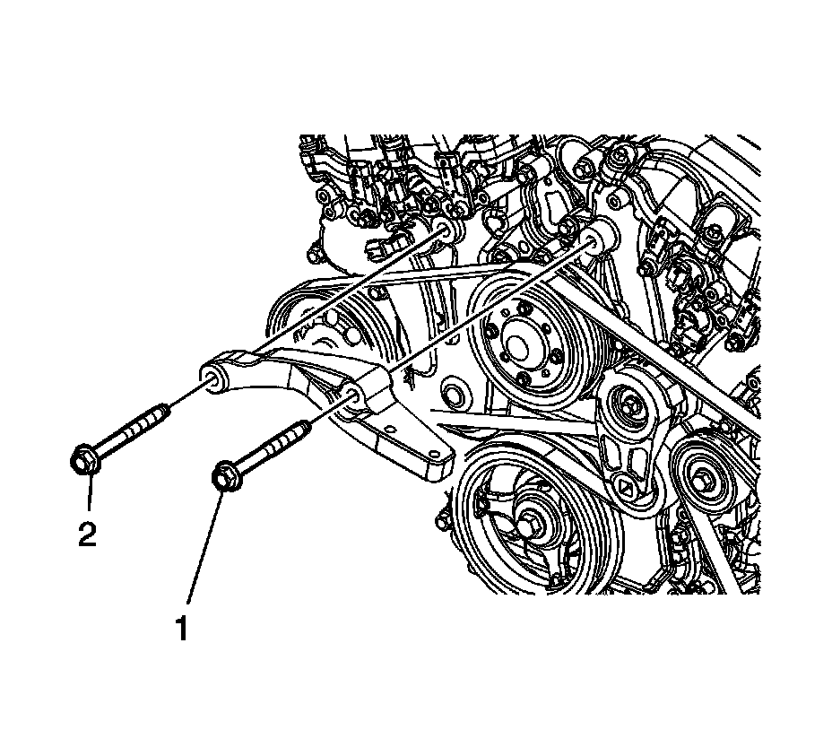2. Remove the engine mount strut to engine mount strut bracket bolts (1).