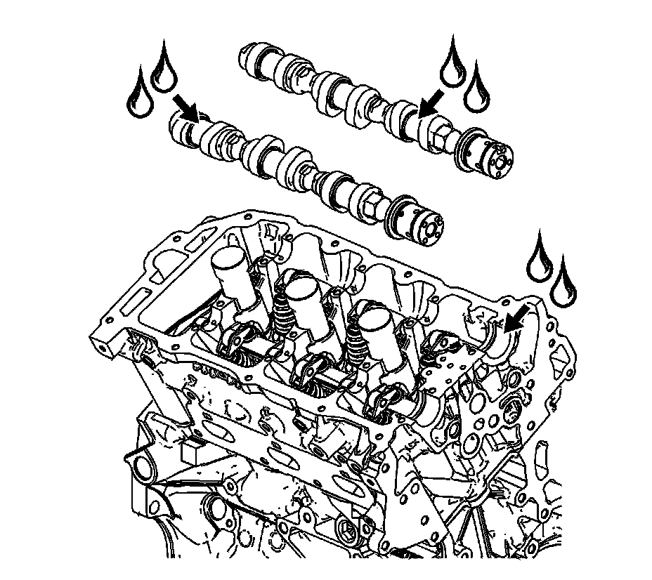 4. Apply a liberal amount of lubricant GM P/N 12345501 (Canadian P/N 992704) or equivalent to the camshaft journals and the right cylinder head camshaft carriers.