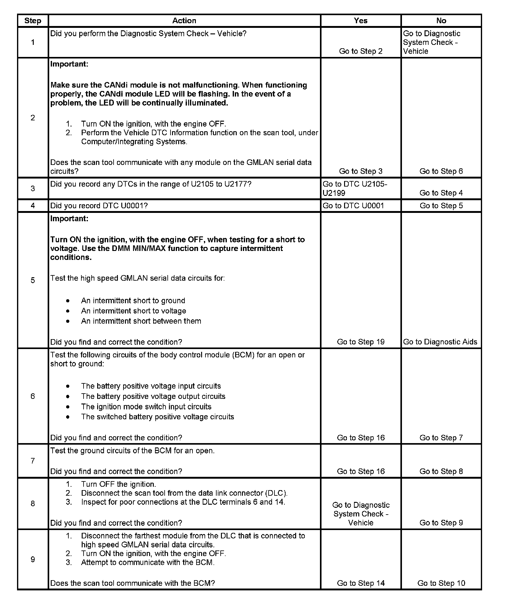 2. A partial malfunction in the high speed GMLAN serial data circuits uses a different procedure from a total malfunction of the high speed GMLAN data circuits. Refer to Data Link References to identify which modules communicate on the high speed GMLAN serial data circuits. Initial Inspection and Diagnostic Overview