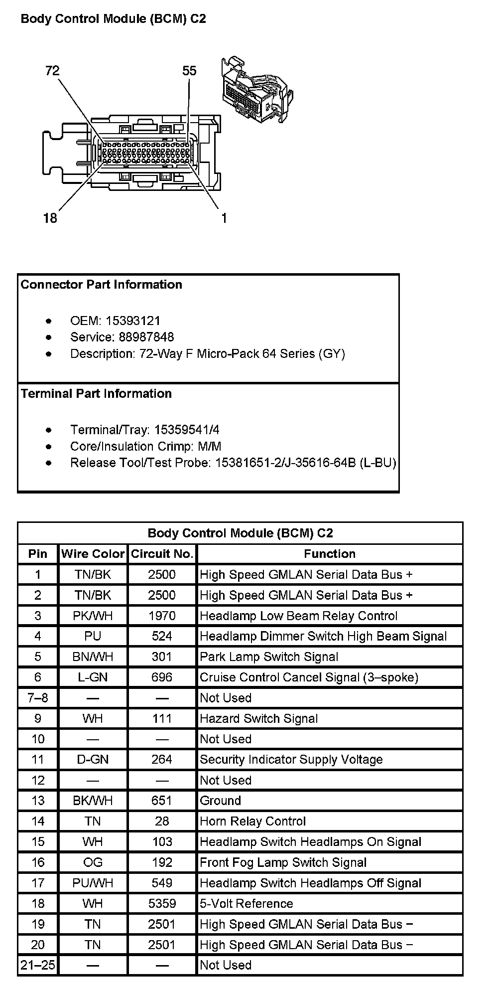 Body Control Module (BCM) C2 (Pin 1 To 25):