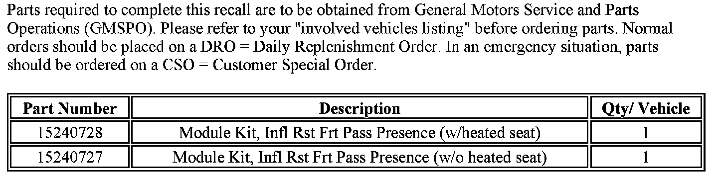 General Motors will notify customers of this recall on their vehicle (see copy of customer letter shown in this bulletin).