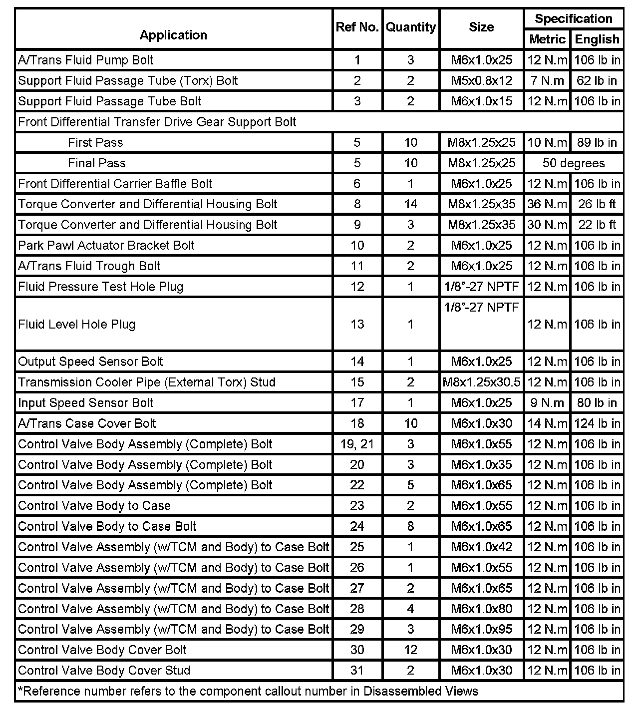 Fastener Tightening Specifications:
