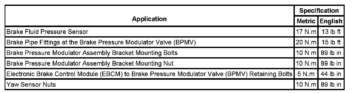 Fastener Tightening Specifications: