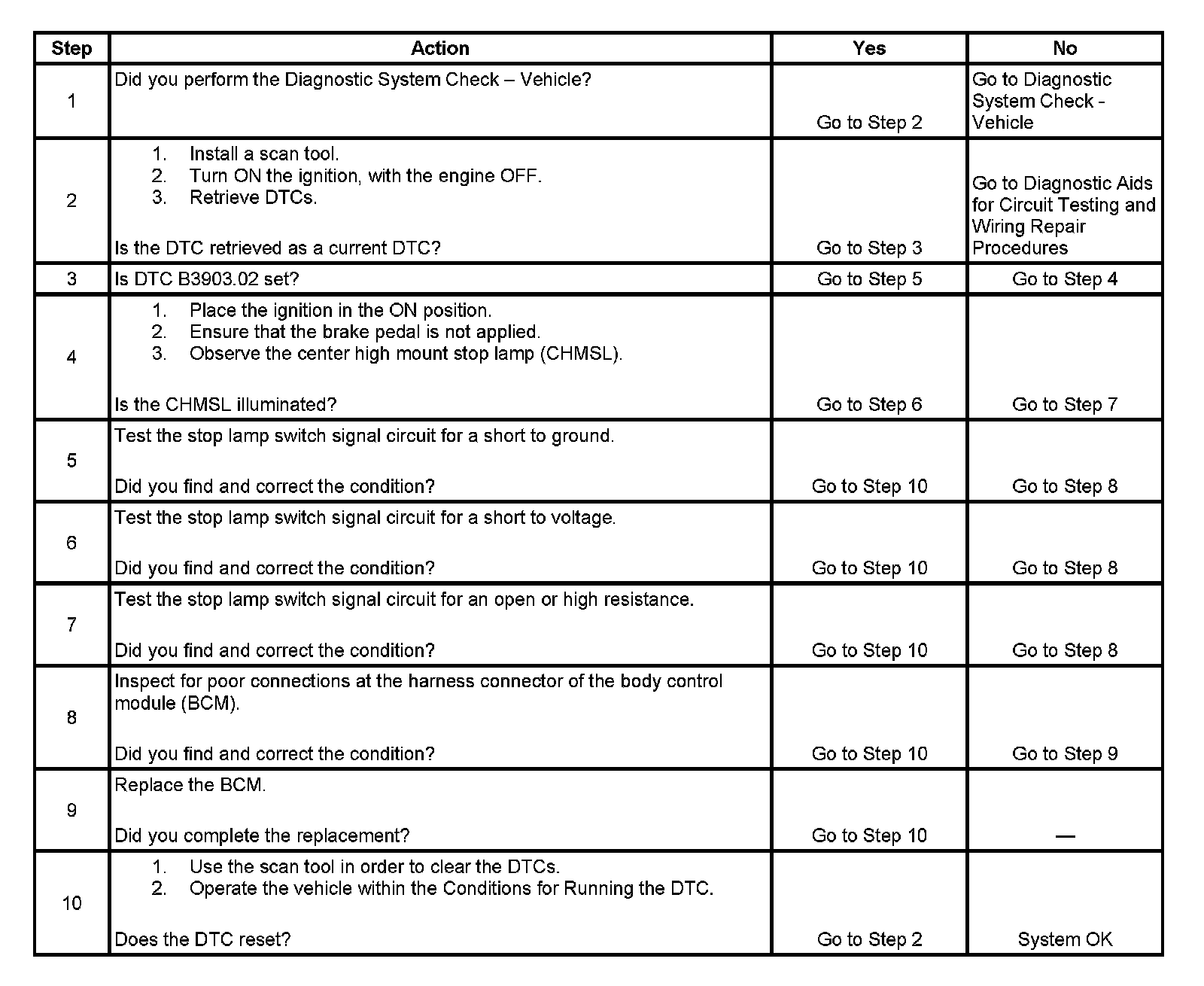 - DTC B3903.02 will set if the stop lamp switch signal circuit is shorted to ground for 125 ms.