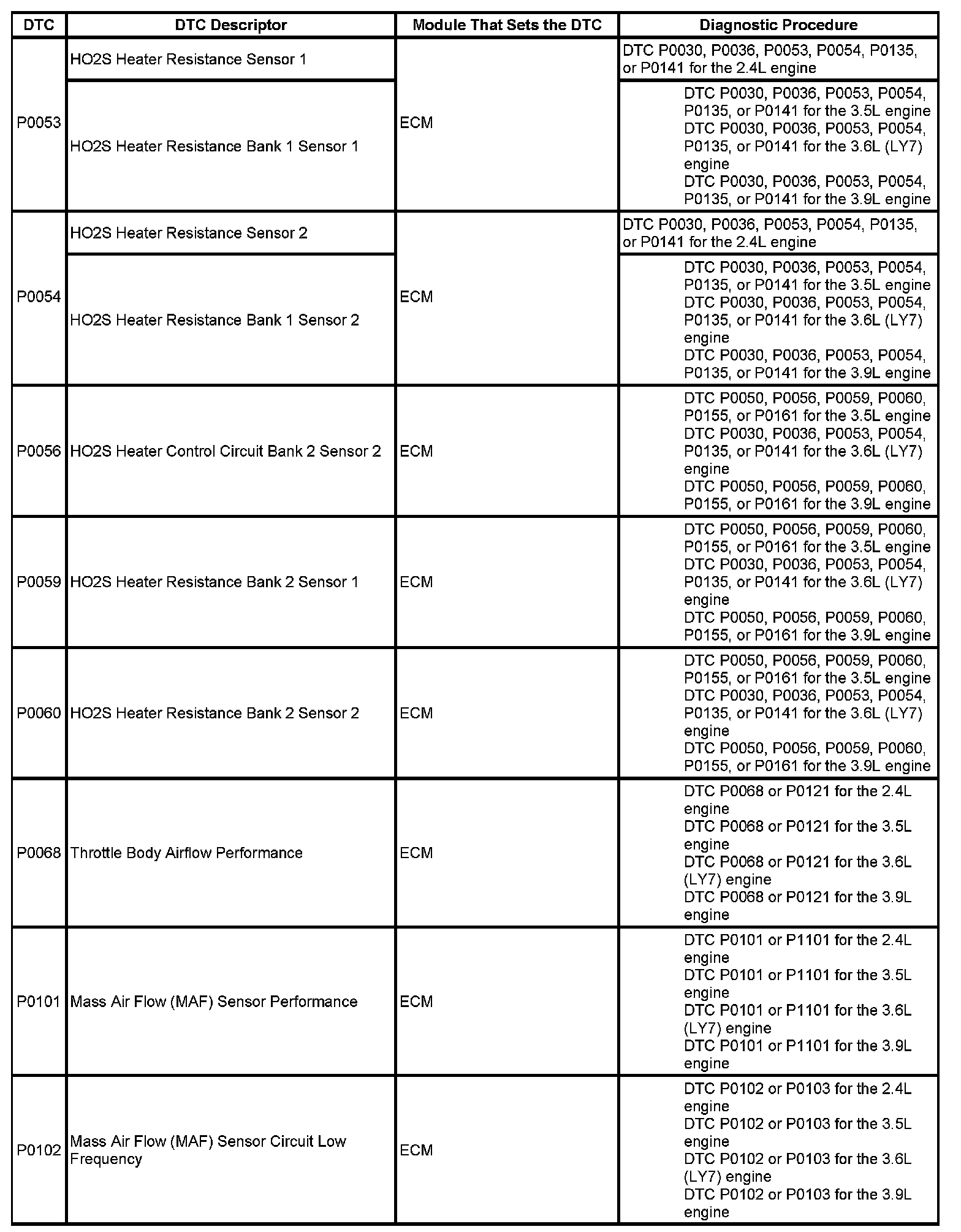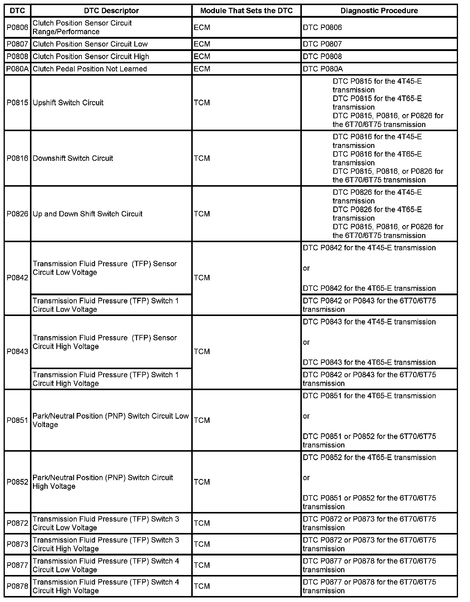 Diagnostic Trouble Code (DTC) List - VehicleThis master DTC list includes all applicable DTCs in alphanumeric order with descriptors.