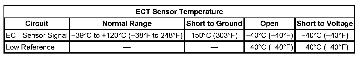 * The control module detects a temperature difference between the ECT sensor and the IAT sensor of more than 100°C (180°F) at start- up.