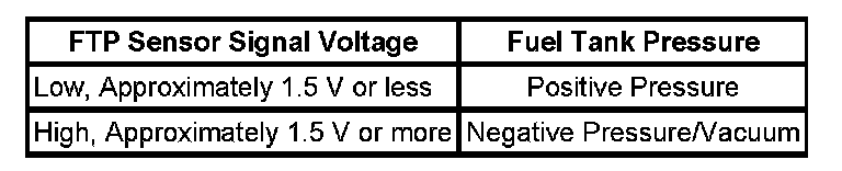 1. Ignition ON and fuel cap removed, verify that the FTP sensor parameter is between 1.3-1.7 volts.