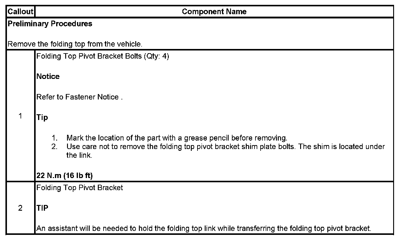 FOLDING TOP PIVOT BRACKET REPLACEMENT