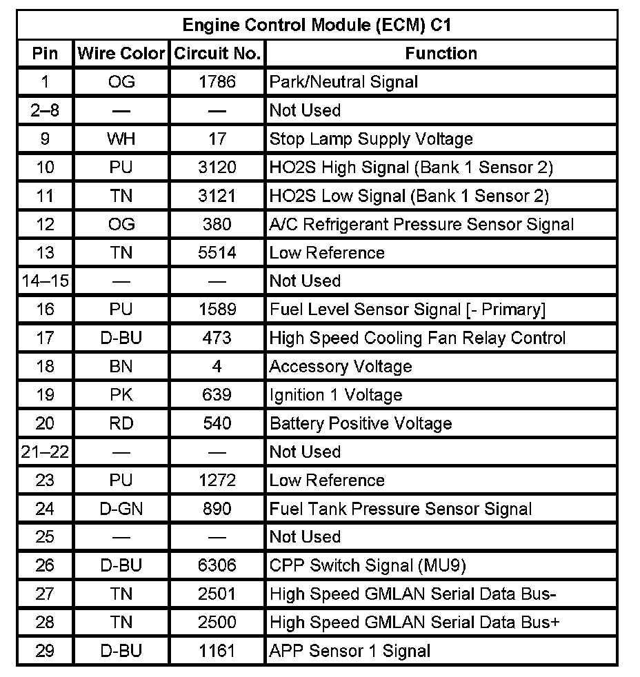 Engine Control Module (ECM) C1 (Pin 1 To 29):