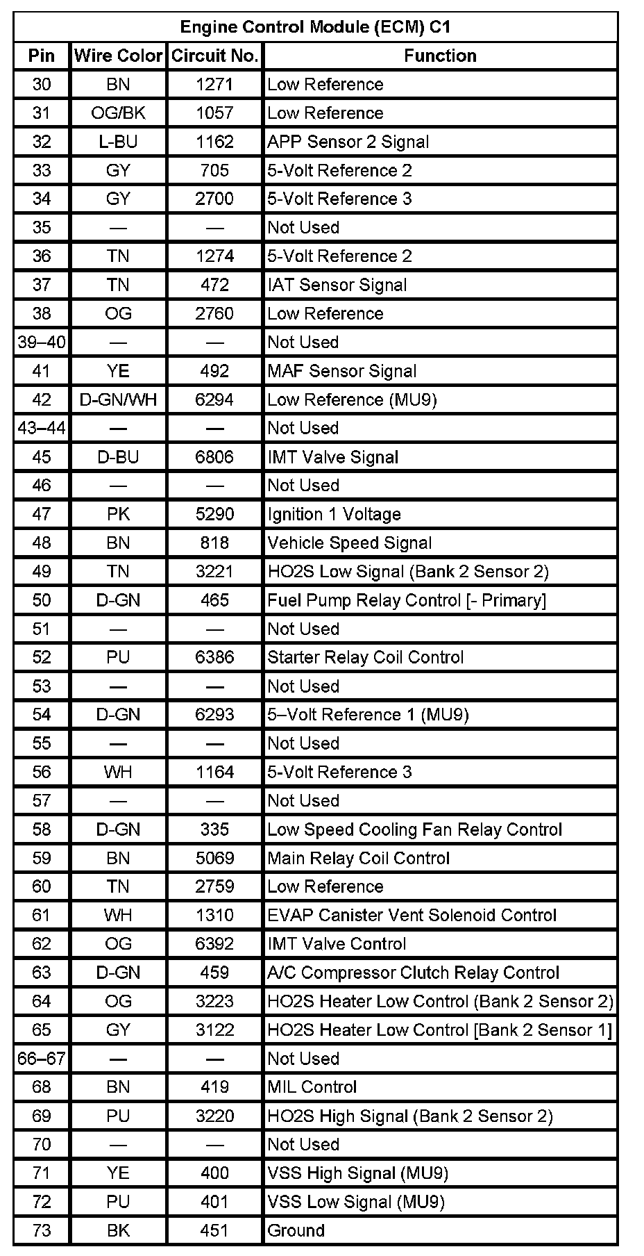 Engine Control Module (ECM) C1 (Pin 30 To 73):