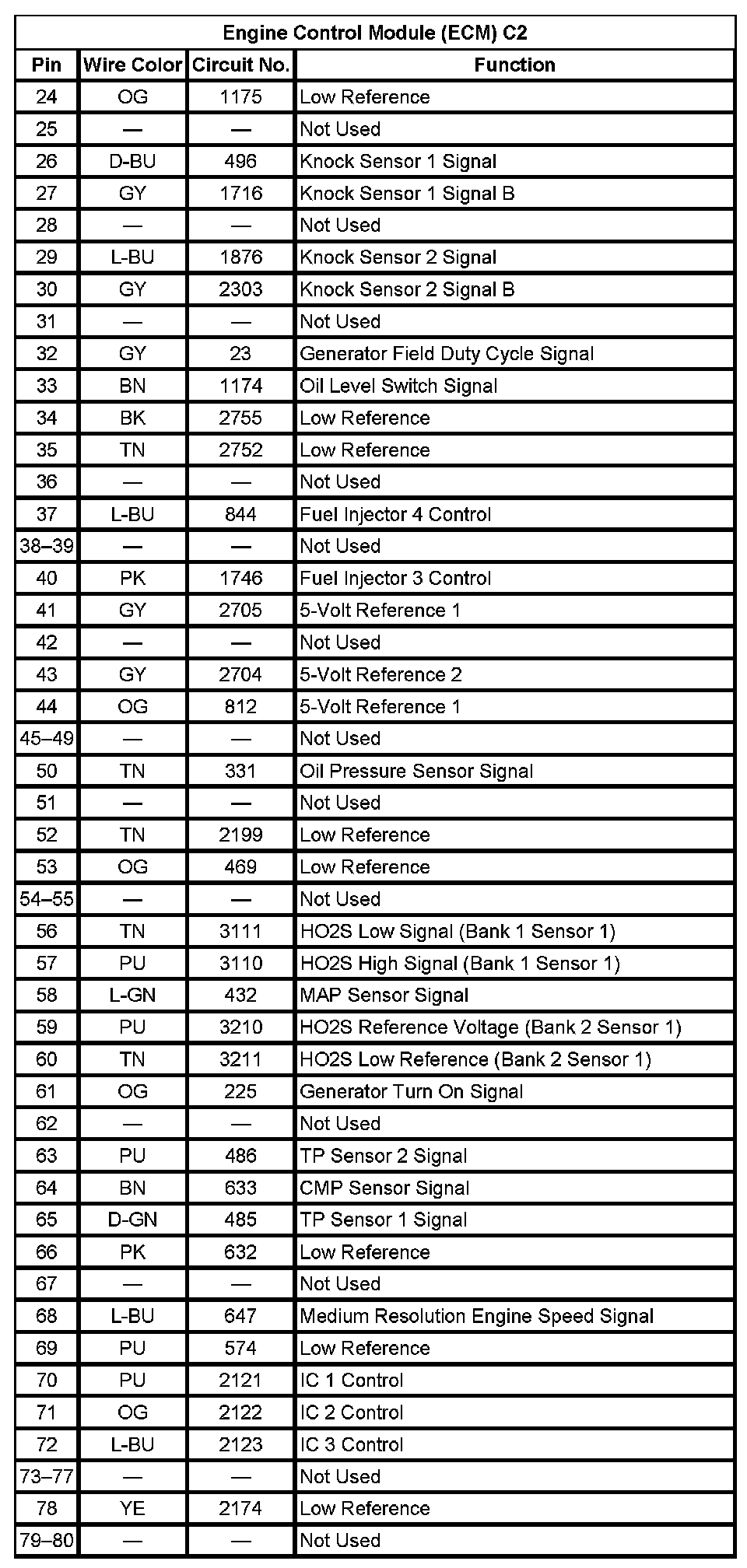 Engine Control Module (ECM) C2 (Pin 24 To 80):