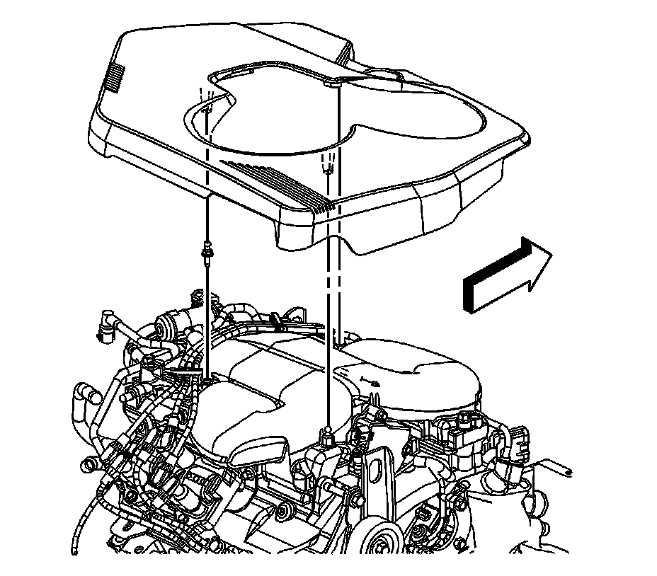 1. Place the cover over the ball studs, aligning the cover with the power steering reservoir cap and the oil fill tube opening.