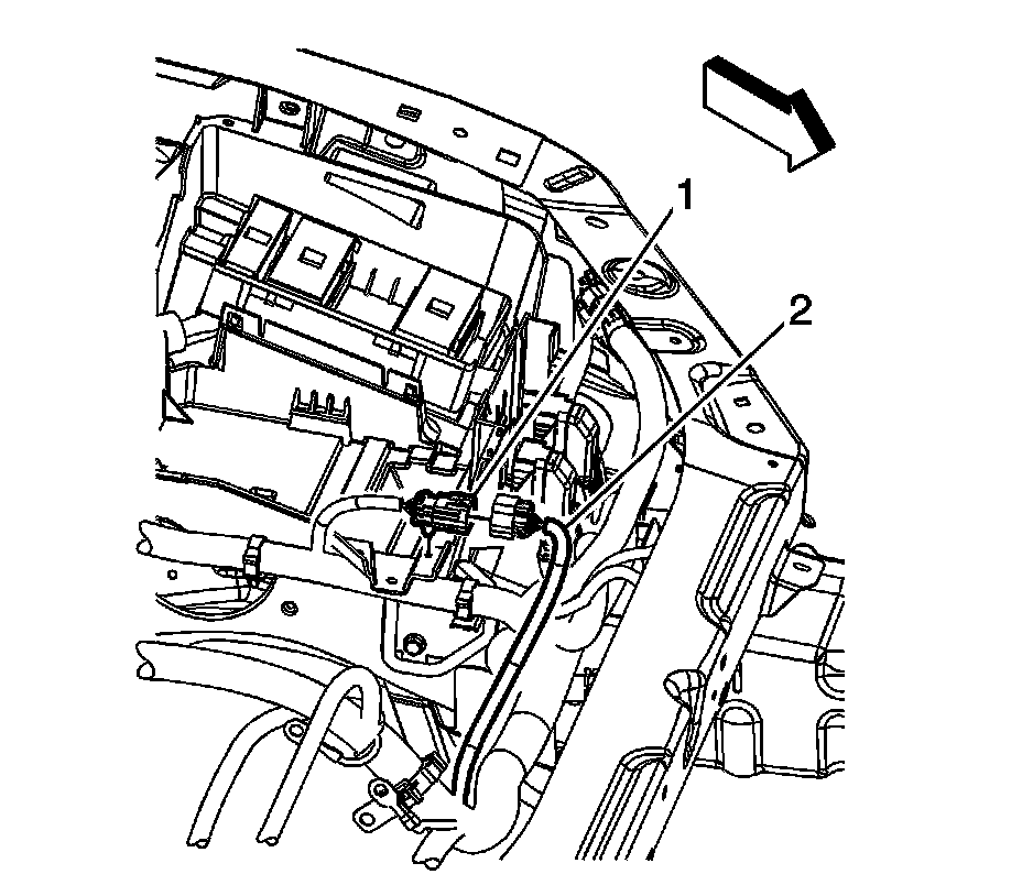 28. Disconnect the engine harness connector (1) from the body harness connector (2).