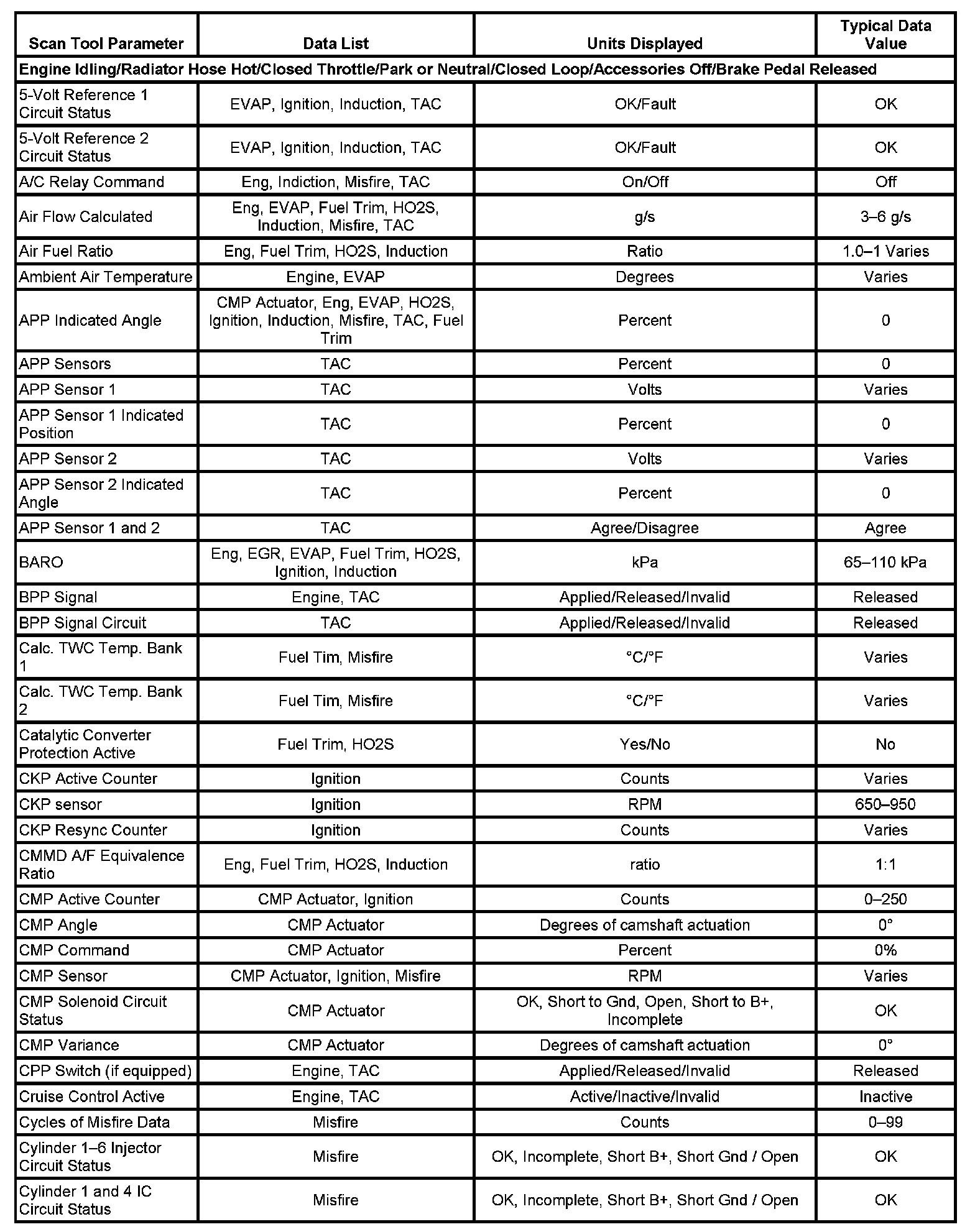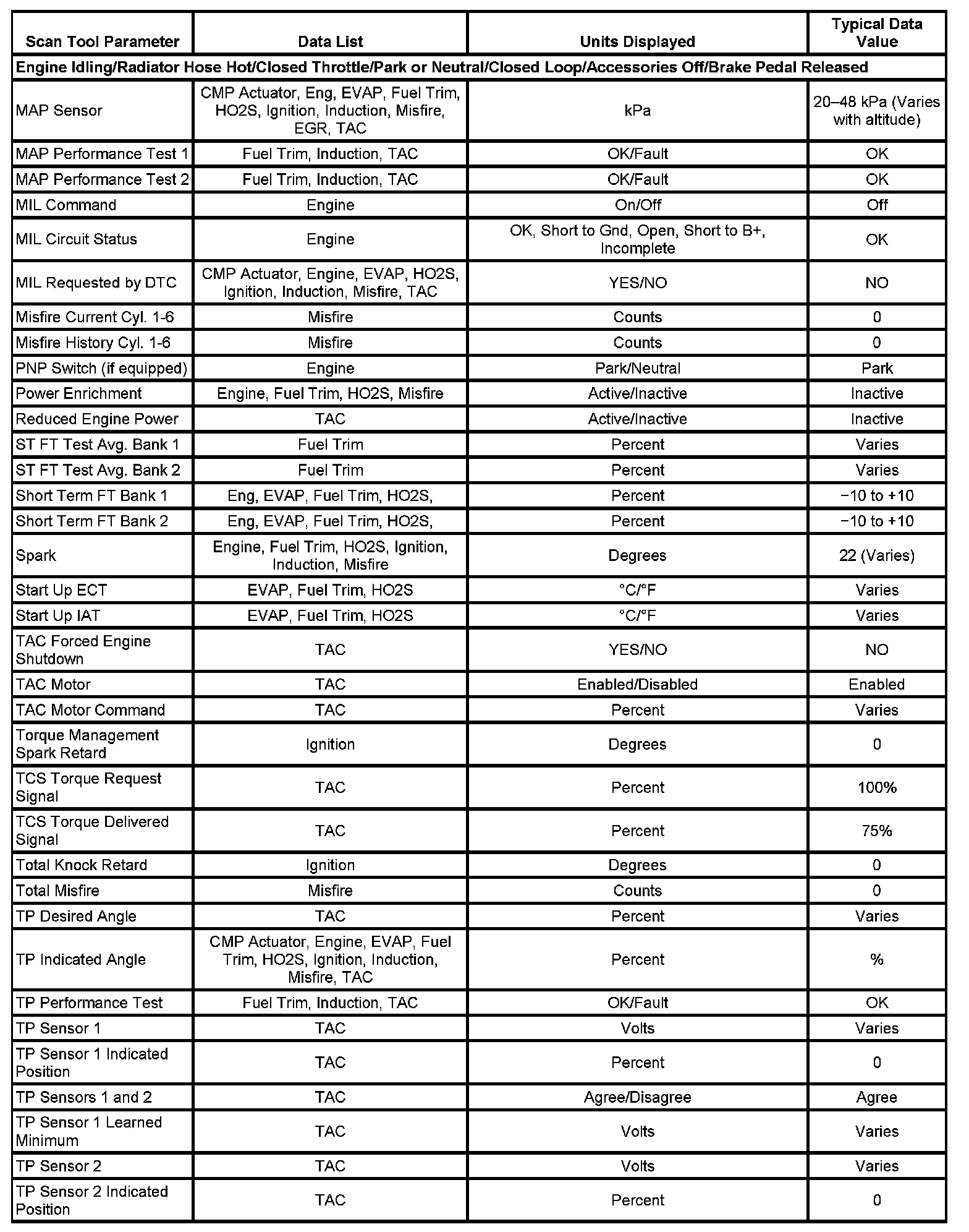 Only the parameters listed below are referenced in this service data for use in diagnosis. If all values are within the typical range described below, refer to Symptoms - Computers and Control Systems for diagnosis. - Symptoms - Engine Controls