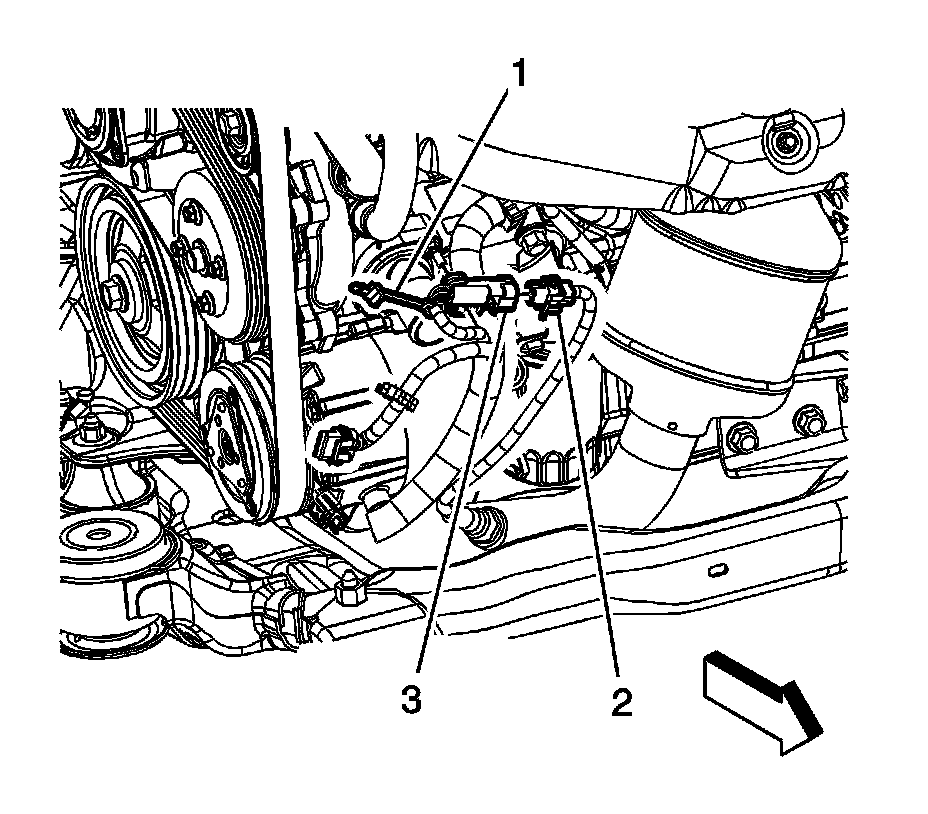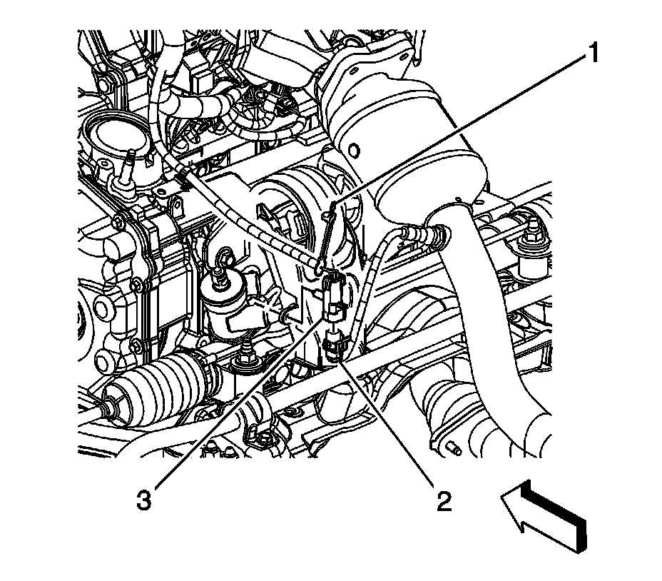 4. Remove the HO2S clip (3) from the oil level indicator tube bracket.