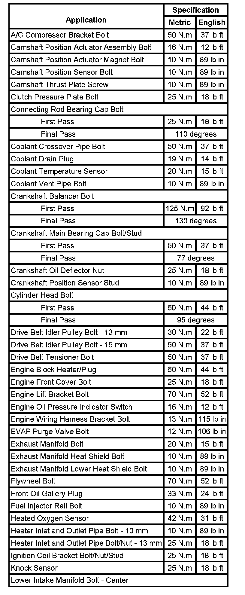 Fastener Tightening Specifications (Part 1):