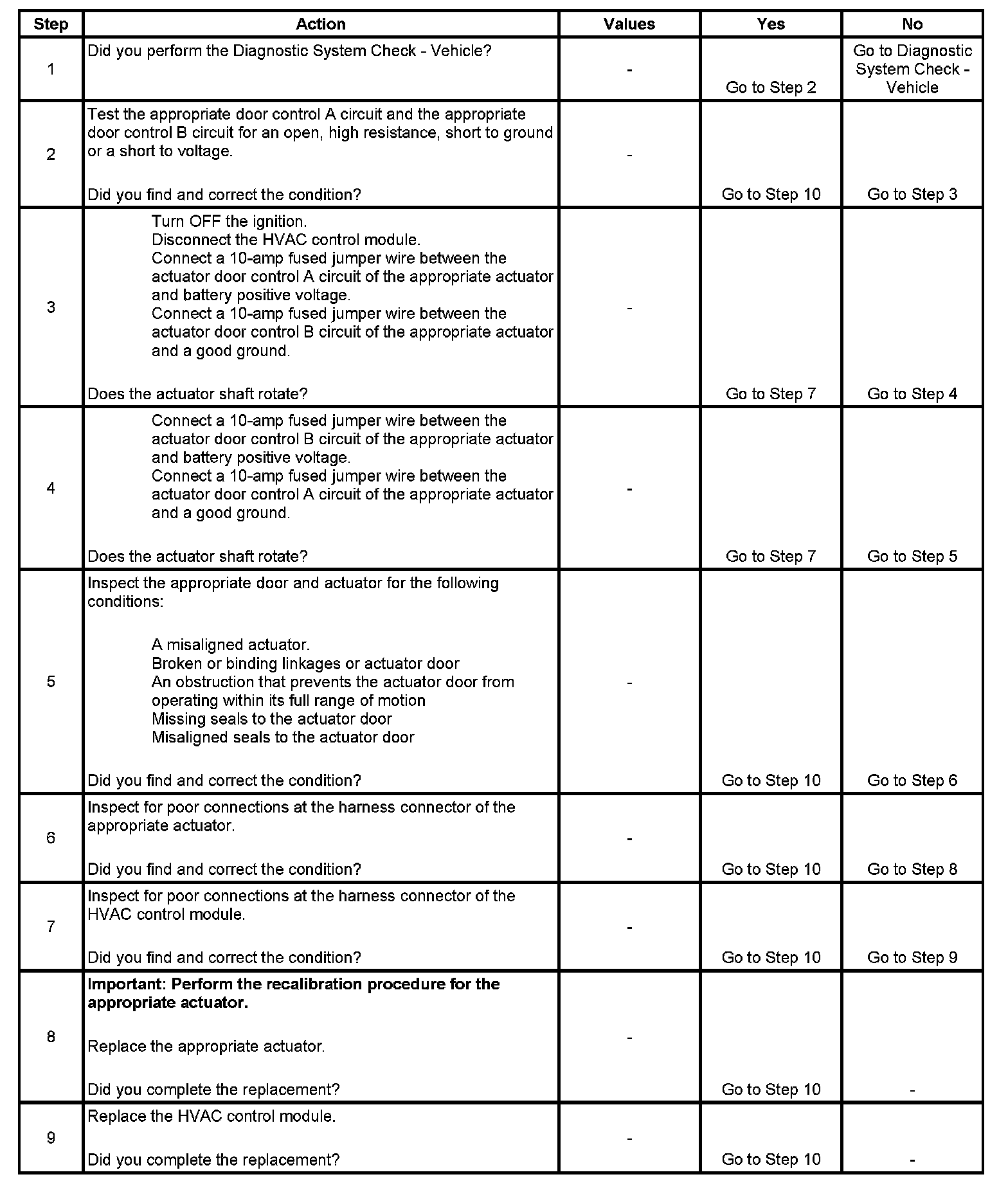 * Inspect the appropriate actuator door and actuator for the following conditions: