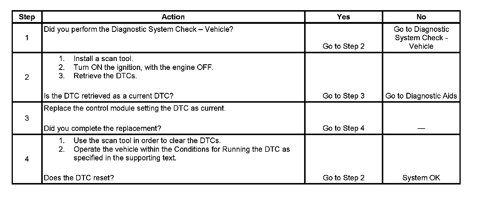 - If this DTC is retrieved as both a current and history DTC, replace the module.