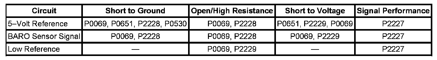 - Barometric Pressure (BARO) Sensor Circuit High Voltage
