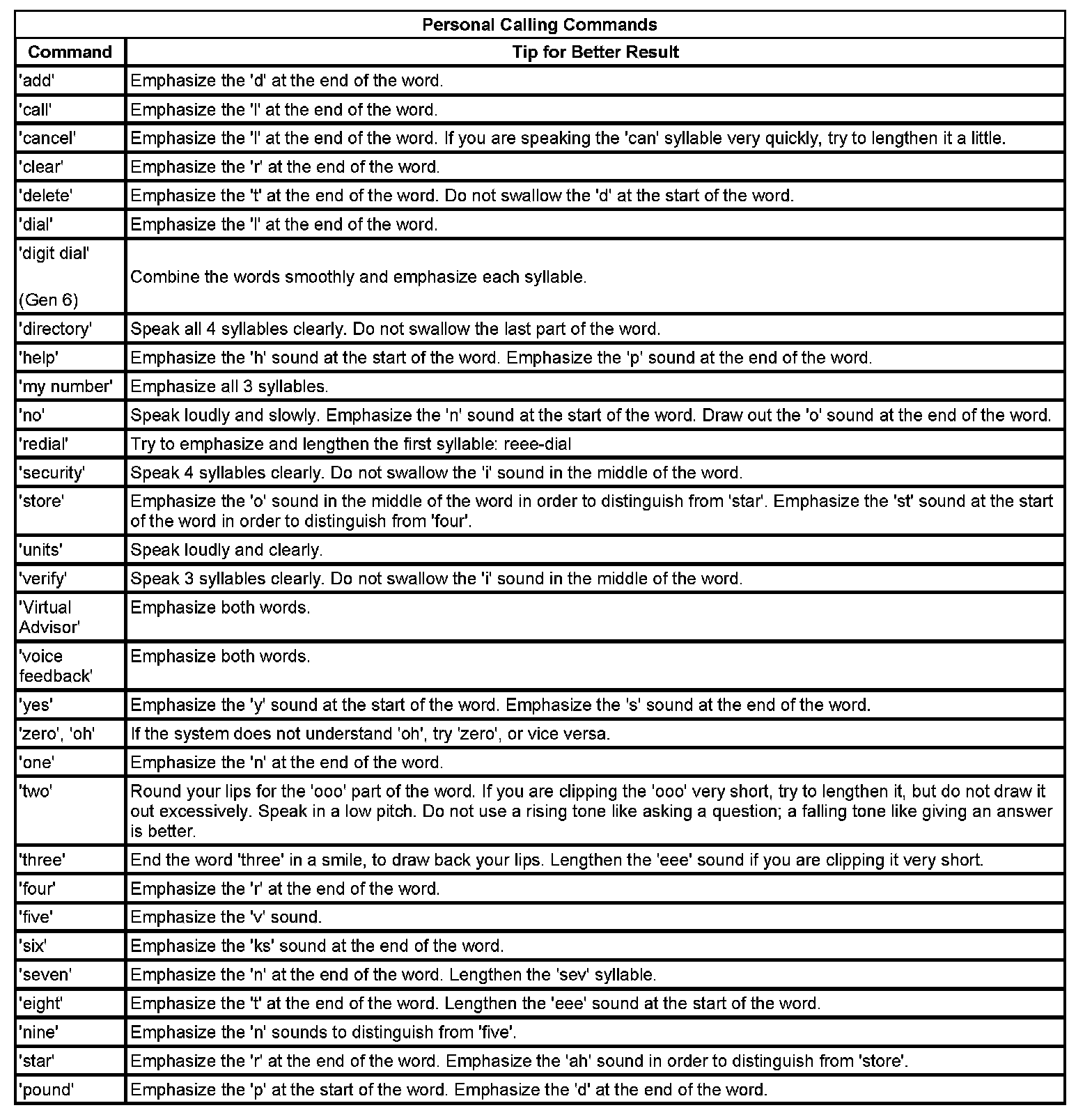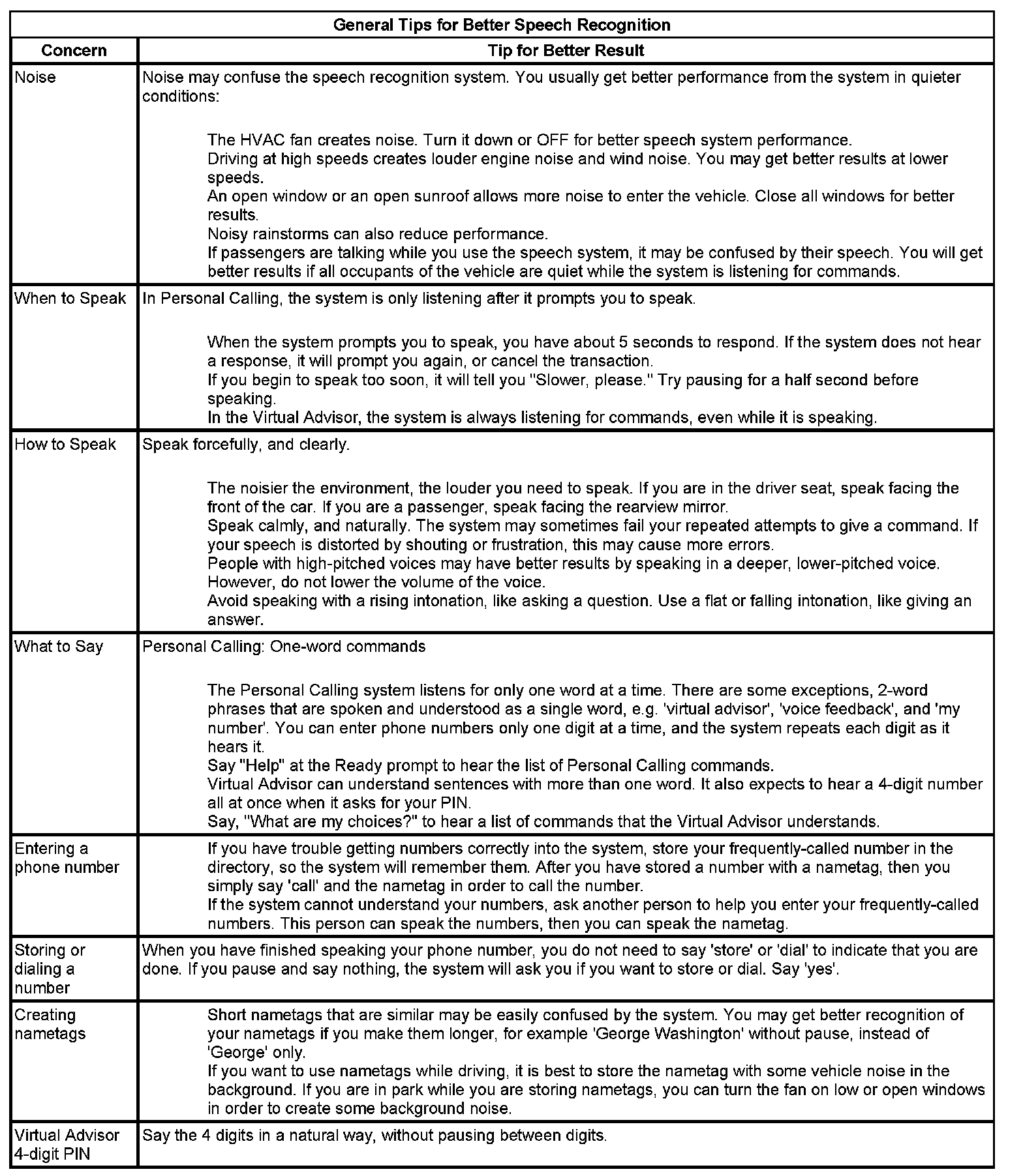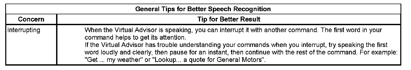 The OnStar(R) speech recognition systems use speech technology that is designed to understand a wide range of American English speakers. Although there is no one right way to speak English, the system will work best when users try to modify their pronunciation should they encounter difficulty. Users who do not obtain good results are advised to try the tips and workarounds found.
