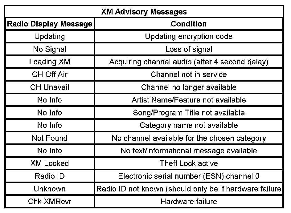 XM is a national satellite radio service that offers up to 100 coast to coast channels including music, news, sports, talk and children's programming. XM provides digital quality audio and text information, including song title and artist name. A service fee is required in order to receive the XM service. For more information, contact XM at www.xmradio.com or call 1-800-852-9696.