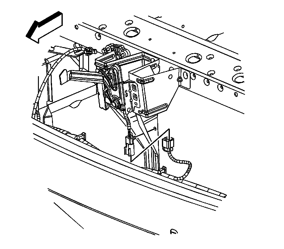 4. Block the hood latch to prevent the hood locking until the hood release cable has been installed.