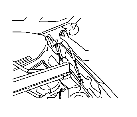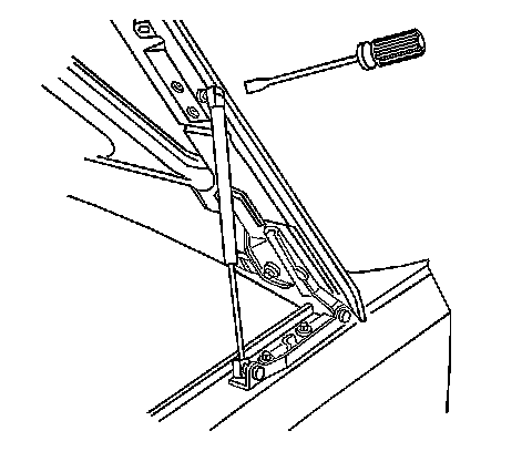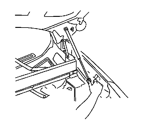 Caution: When a hood hold open device is being removed or installed, provide alternate support to avoid the possibility of damage to the vehicle or personal injury.
