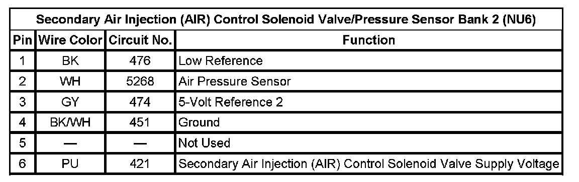 Secondary Air Injection (AIR) Control Solenoid Valve/Pressure Sensor Bank 2 (NU6)