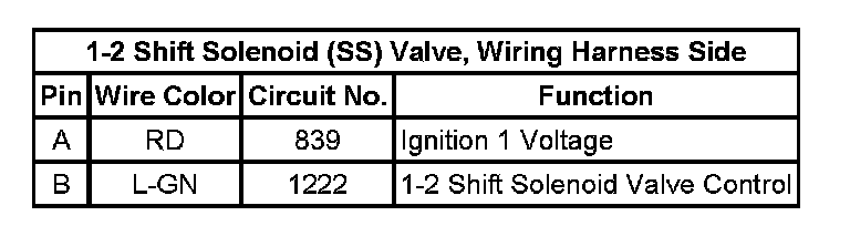 1-2 Shift Solenoid Valve, Wiring Harness Side: