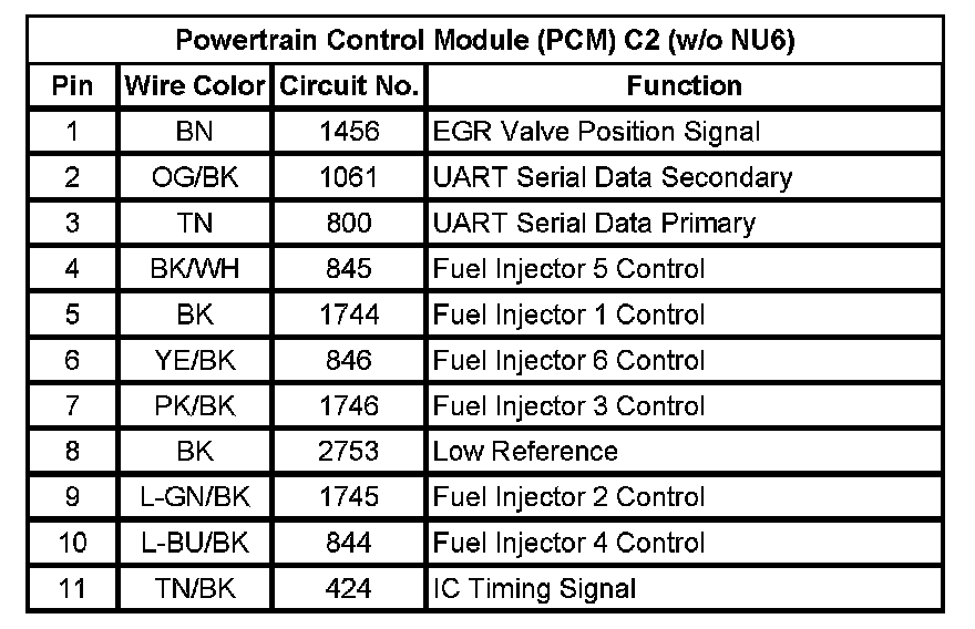 Powertrain Control Module (PCM) C2 (w/o NU6) (Pin 1 To 11):