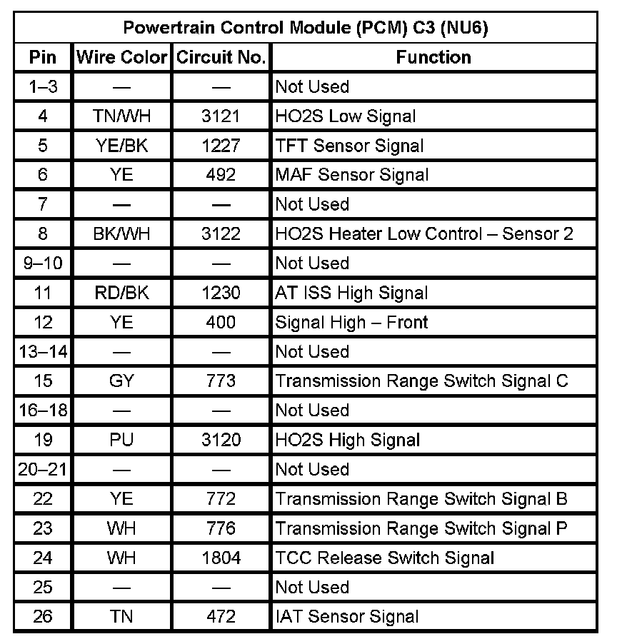 Powertrain Control Module (PCM) C3 (NU6) (Pin 1 To 26):
