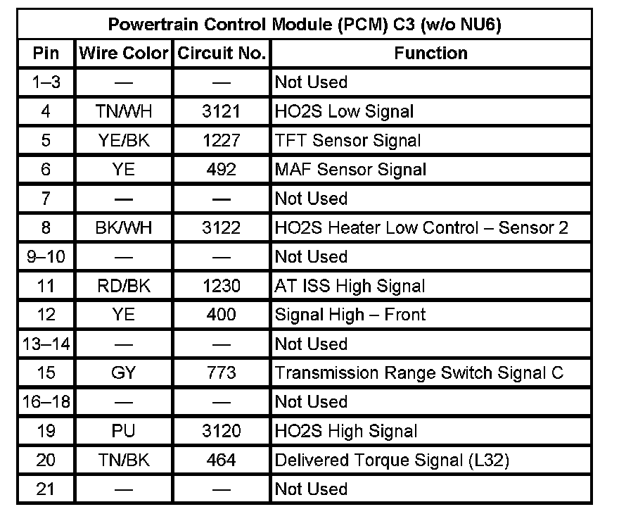 Powertrain Control Module (PCM) C1 (w/o NU6) (Pin 1 To 21):