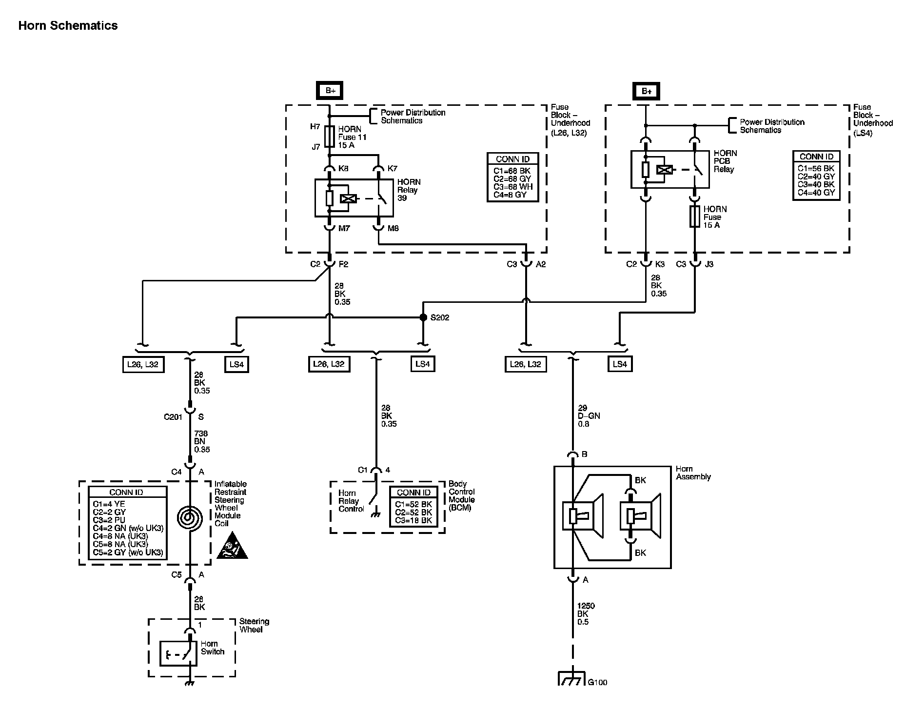 The locations for the Connectors, Grounds, Splices, and Grommets shown within these diagrams can be found via their numbers at Vehicle Locations.