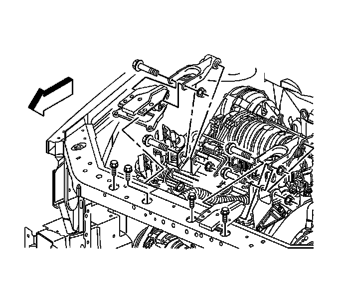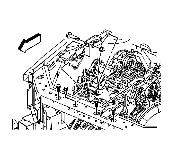 1. If equipped with a L26 engine, remove the bolt and the nut from the right engine mount strut at the right engine mount strut bracket on the engine.