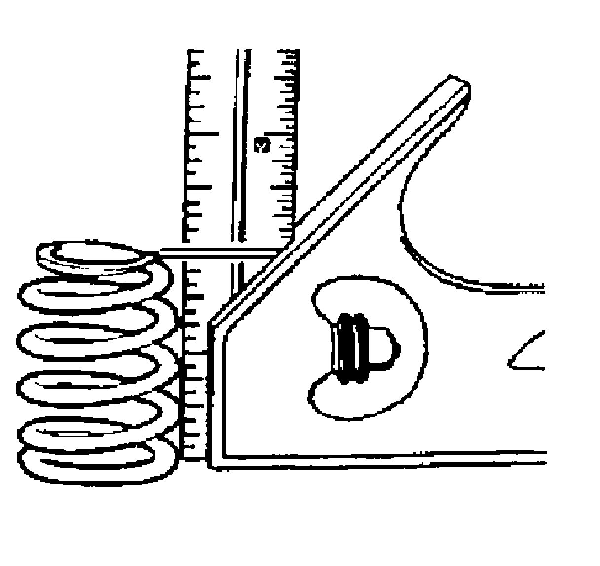 17. Using the J 9666 test the valve spring load. Replace the spring if the valve spring load is less than 334 N.m at 43.69 mm (75 lb at 1.72 in).