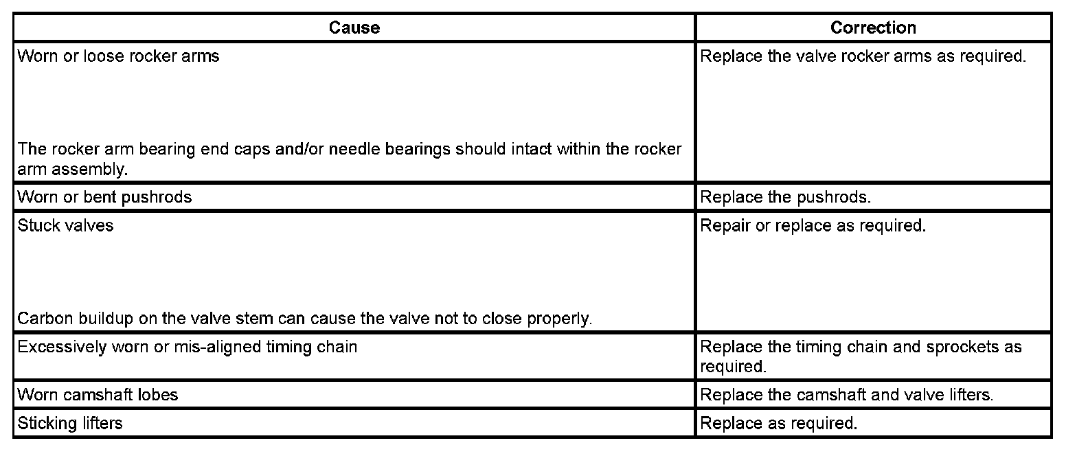 Base Engine Misfire with Abnormal Valve Train Noise: