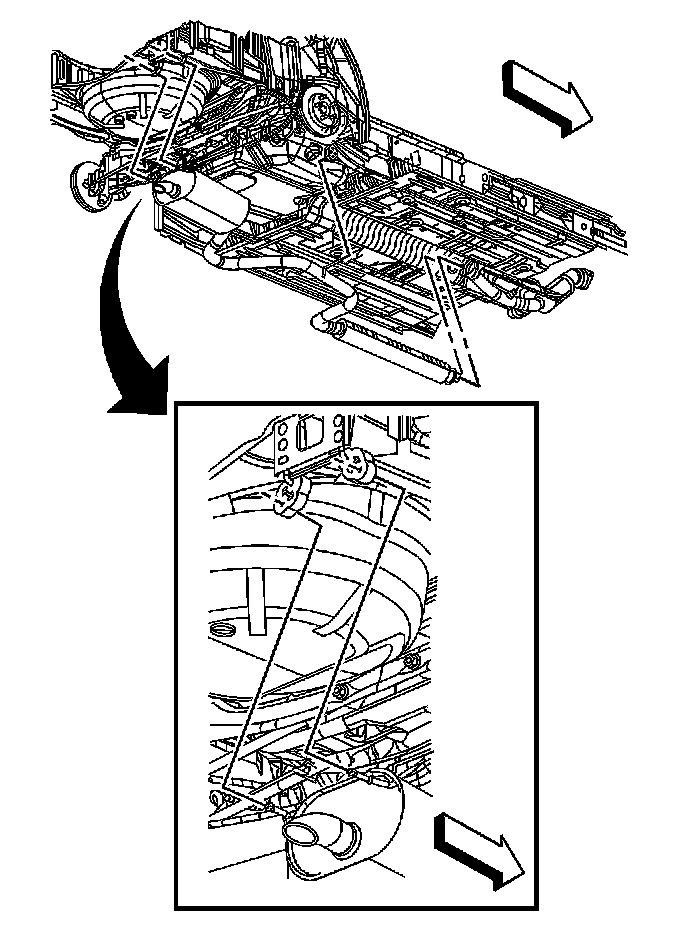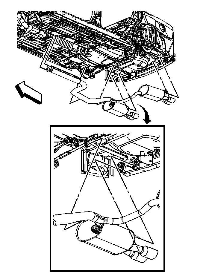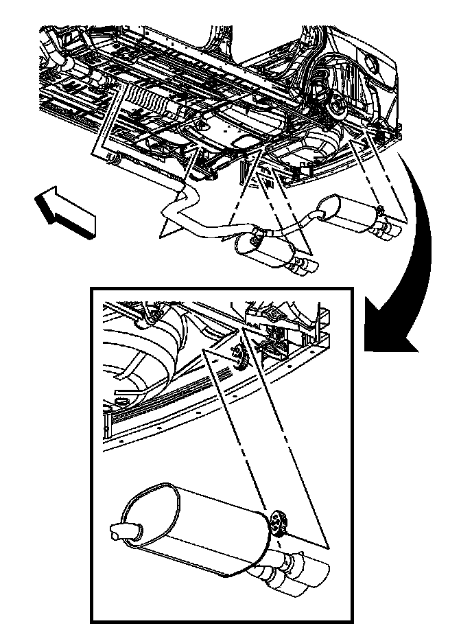 6. Remove the muffler from the exhaust pipe hanger (dual exhaust with RPO Z7T, left side).