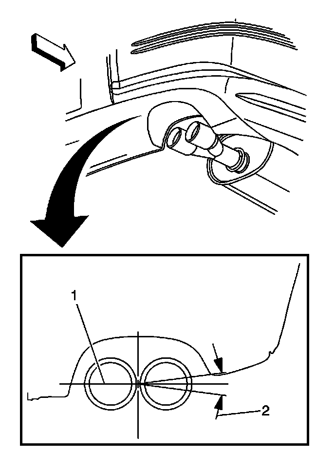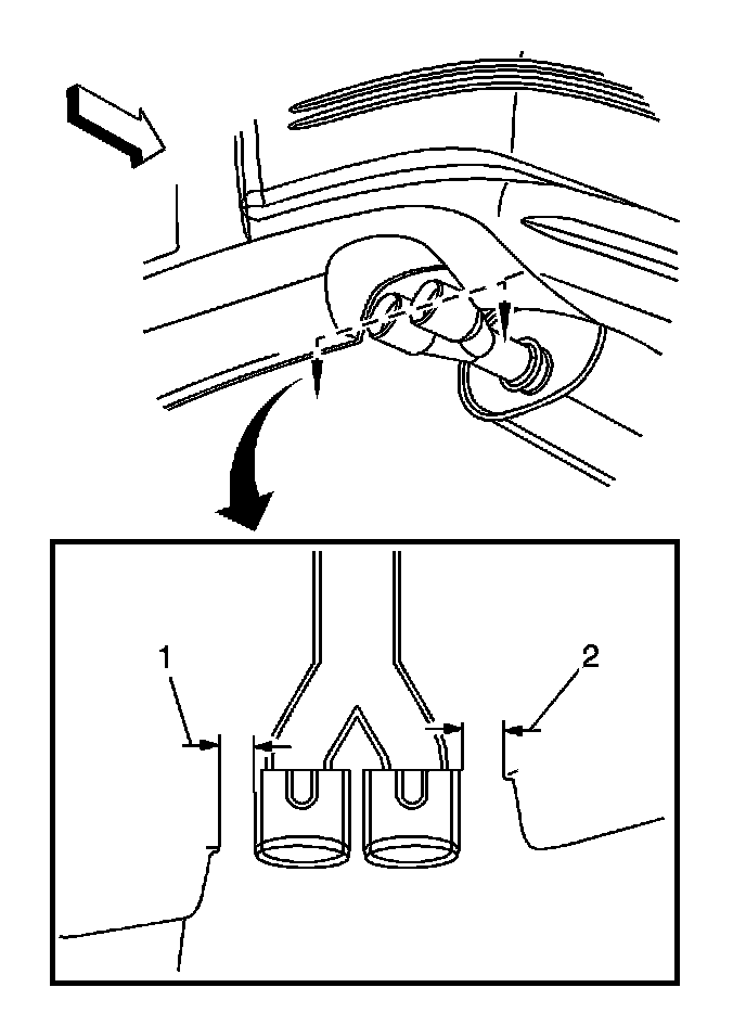 2. Align the muffler tail pipe centerline (1) to the rear fascia (2).