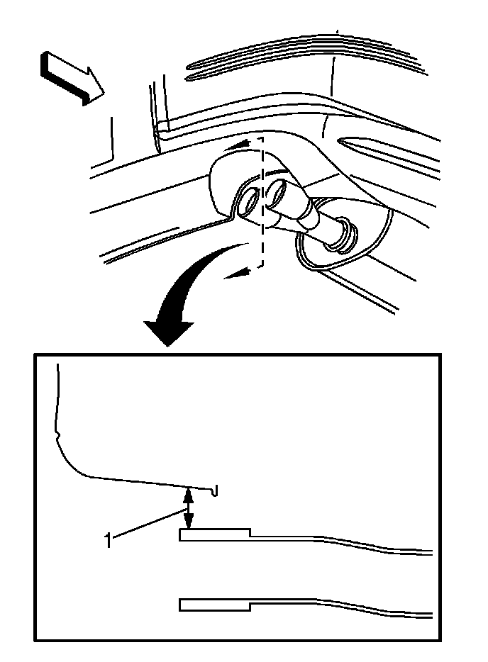 3. Align the muffler tail pipe height to the rear fascia (1).